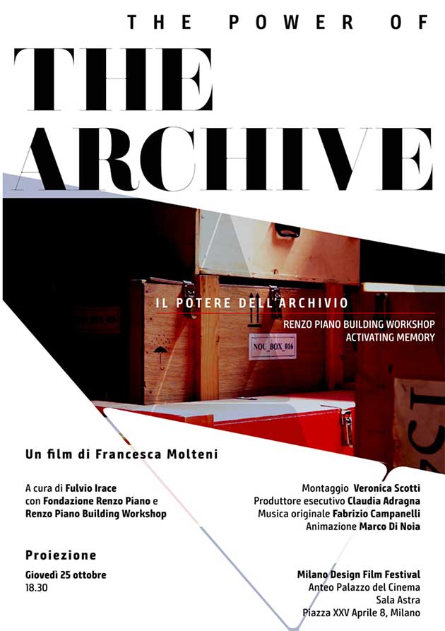Dopo le anteprime di Londra e di Roma, il Potere dell’archivio. Renzo Piano Building Workshop, film prodotto da Muse per la regia di Francesca Molteni (trailer) e curato da Fulvio Irace in collaborazione con Fondazione Renzo Piano e Rpbw sarà proiettato a Milano in occasione di Milano Design Film Festival (25-28 ottobre).
