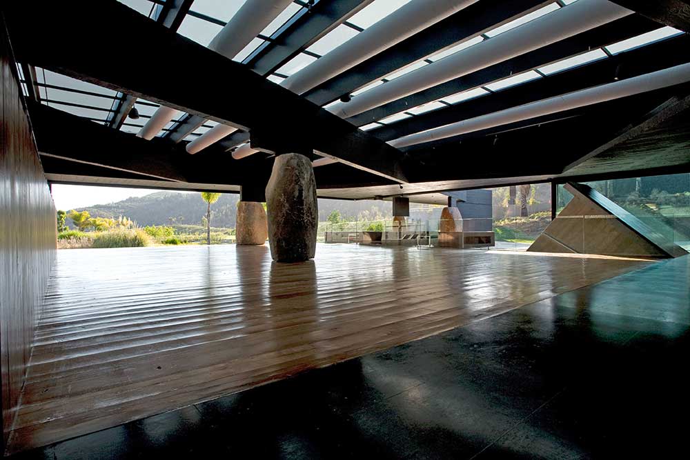 All’interno del Parco del Bicentenario, ai margini di Santiago, il ristorante Mestizo appare come un’estensione del paesaggio. La copertura, sostenuta da dolmen di pietra provenienti da una vicina cava, si fa insieme orizzonte, riparo e gesto civico, offrendo ombra e continuità mentre dissolve i confini tra il ristorante all’interno e il terreno circostante. Vento, luce e lontane viste delle Ande vengono moderate dalla profondità e dalle proporzioni, creando condizioni spaziali radicate nel luogo, nel clima e nella presenza condivisa degli ospiti. Ph. courtesy Gonzalo Puga.