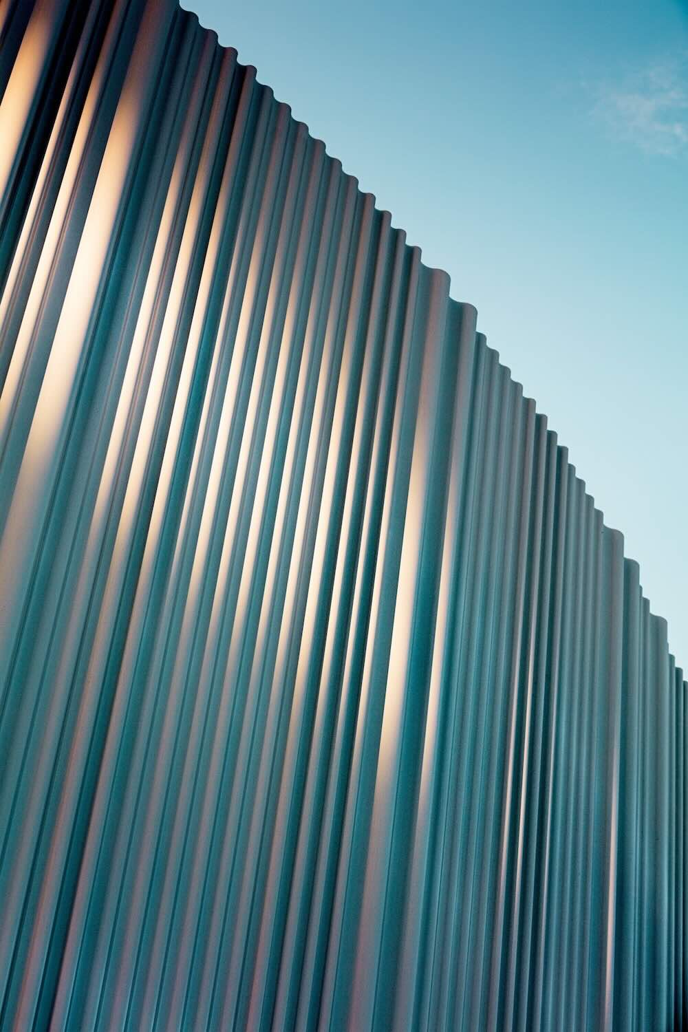 La combinazione dei profili consente pose verticali, orizzontali o diagonali e rende il sistema adatto a soluzioni architettoniche personalizzate, in cui l’involucro diventa parte attiva della composizione dell’edificio. Un esempio è il ristorante Walter a Wiener Neudorf, progettato dallo studio austriaco dreiplus Architekten per il gruppo austriaco Walter, dove la facciata è definita dall’alternanza di tre profili ondulati in alluminio estruso con sezioni differenti, posati senza soluzione di continuità secondo un ordine preciso.