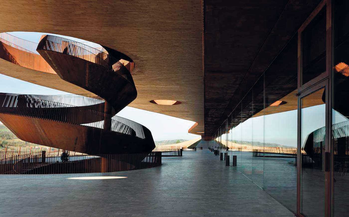 L´uso del legno rimane confinato agli arredi e soprattutto alla presenza delle migliaia di barriques per la maturazione del vino, oggetto e soggetto dell´intera composizione architettonica.