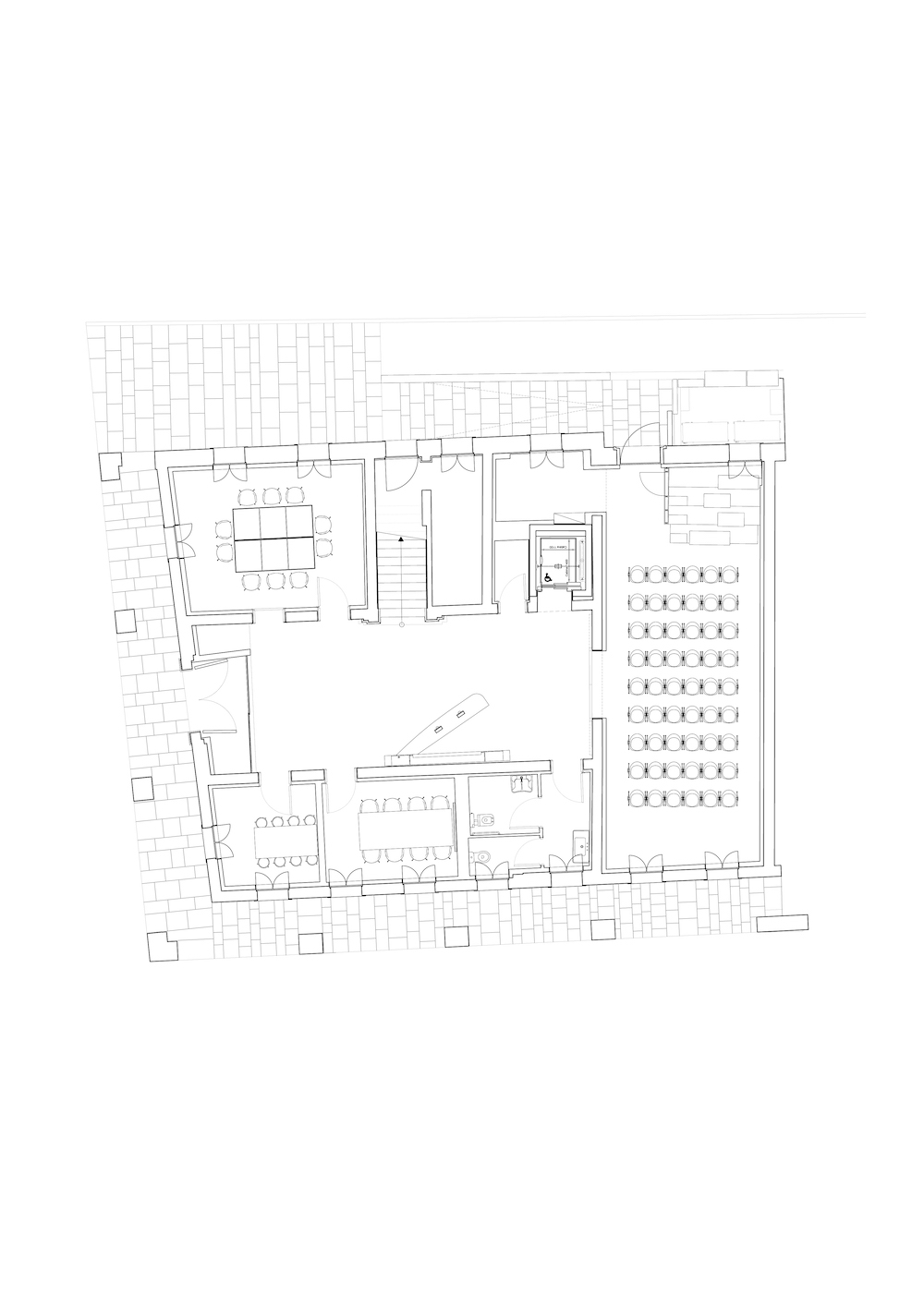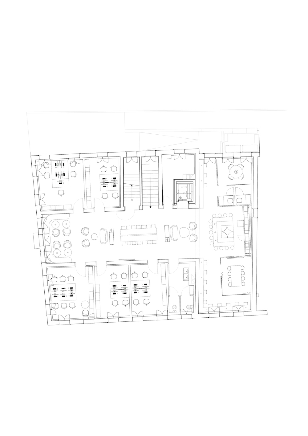All’interno, il piano terra è dedicato ad ampie sale per formazione ed eventi. Il primo e secondo piano sono adibiti a uffici arredati, postazioni, sale meeting. Al primo livello si trova infine una caffetteria.