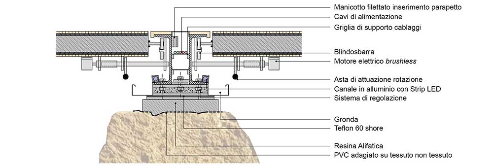 Qualsiasi eventuale alterazione del microclima sarà gestita mediante un sistema di alert che consentirà di verificare, e nel caso modificare per il ripristino delle condizioni ottimali, i parametri incidenti: quantità di superficie aperta e/o chiusa, durata delle diverse configurazioni (aperta, chiusa, intermedie), insolazione diretta, velocità dell’aria, tasso di umidità.
