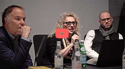 Giulio Rigoni, project architect di BIG per la SPFF, con Federica Norzi di S.Pellegrino e Claudio Mosconi, responsabile del DVO_Learning & Innovation Center di Milano |