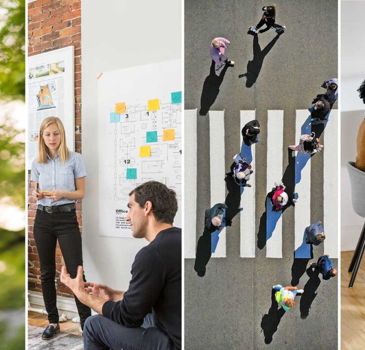 Divani modulari come Rhyme di NaughtOne possono essere riconfigurati per creare gruppi di dimensioni diverse. Tavoli o tavolini come il Saarinen Lounge Table di Knoll o il Soft Coffee Table di Muuto si possono spostare facilmente per rispondere alle esigenze degli ospiti sul momento.