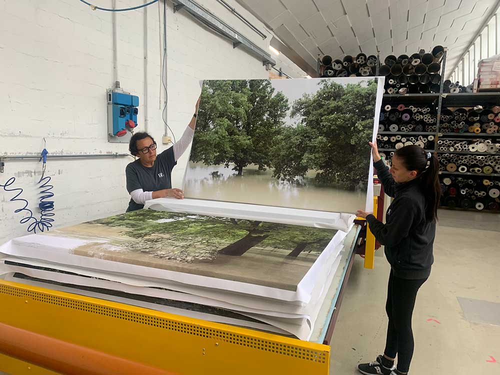 La stampa su tela di una delle foto di Silvia Camporesi per il capitolo Fragile sublime (ph. courtesy Fondazione Dino Zoli).