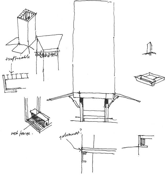 Schizzi progettuali di Sean Godsell (Sean Godsell) per la cappella che sarà costruita da Zintek e Maeg
