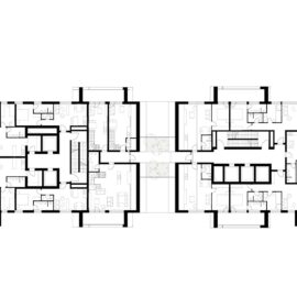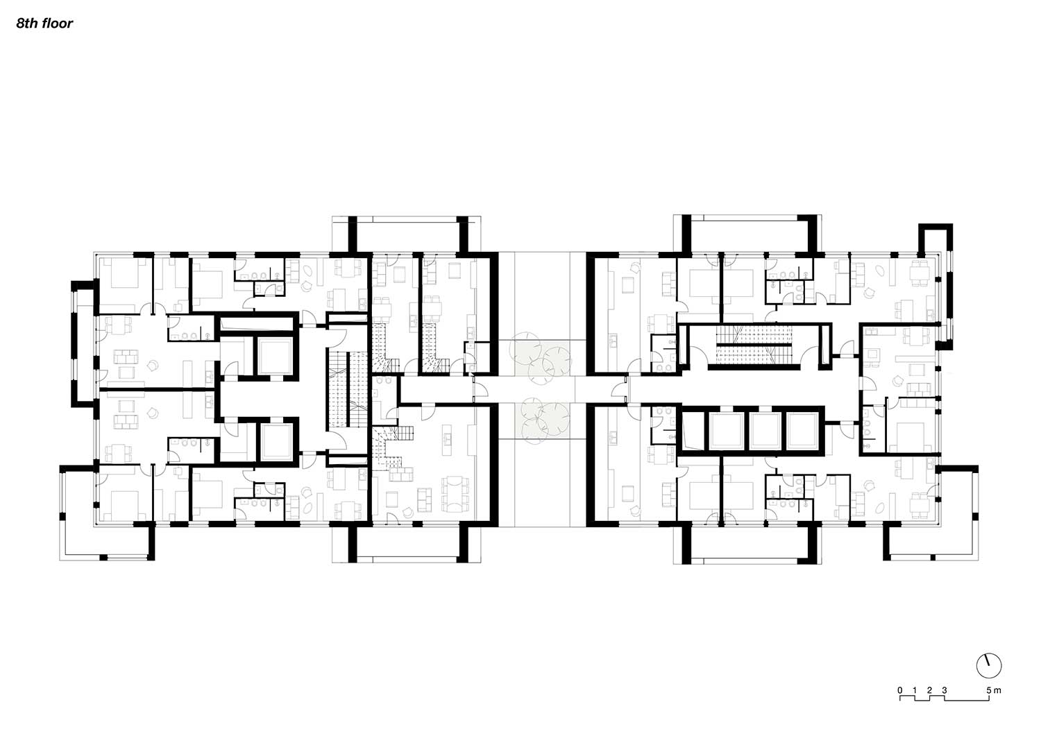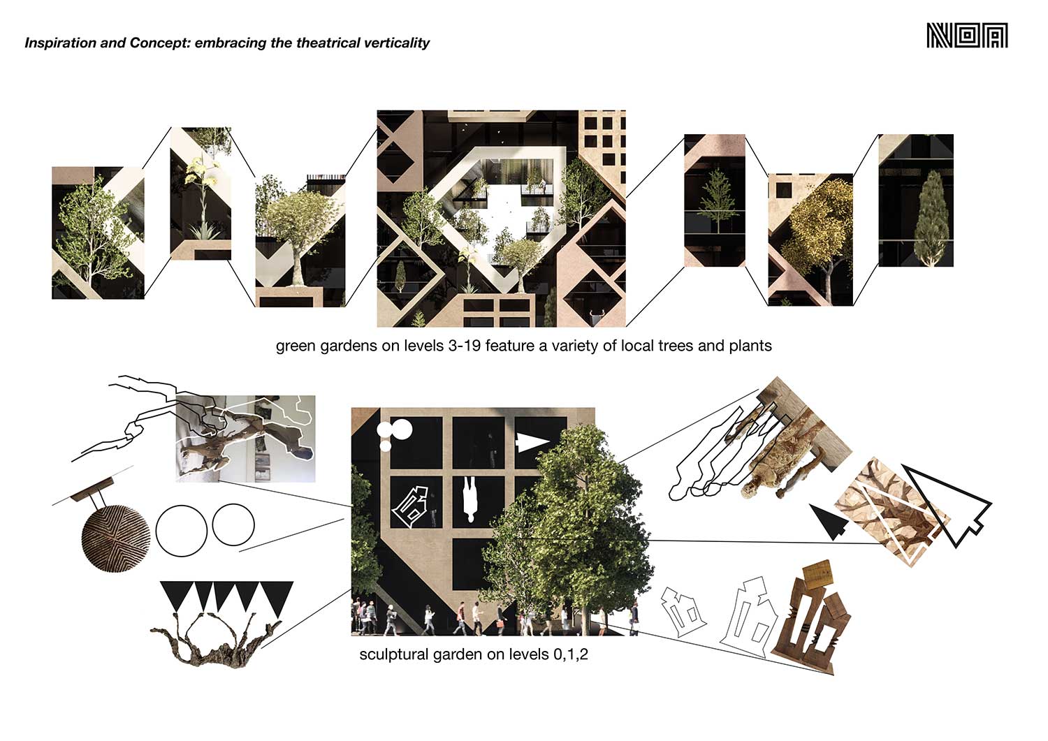 «Tra l’ottavo e l’11esimo piano un grande vuoto, sagomato come una casa anch’essa ruotata, attraversa la facciata da lato a lato, aggiungendo un elemento inaspettato al progetto, un vuoto volumetrico, quasi come fosse il pezzo mancante del puzzle» conclude Andrea Dal Negro.