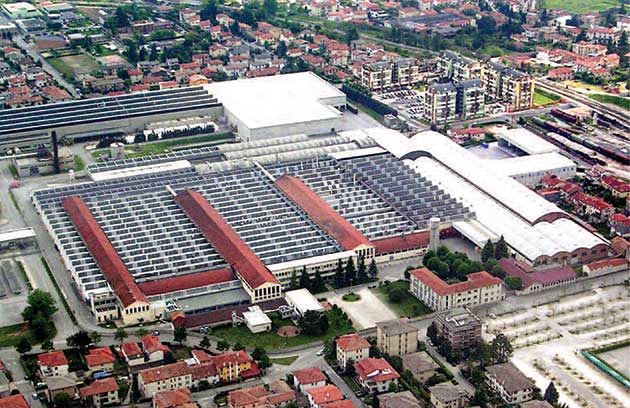 una foto aerea dello stabilimento di Baxi a Bassano del Grappa, in larga parte insediato negli edifici d´epoca costruiti nel 1925