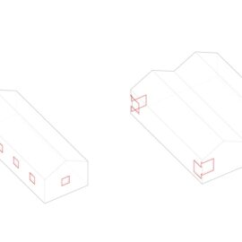 La forma architettonica si ispira ai moduli e alle tipologie locali: un sistema lineare con tetti a falde, elementi ricorrenti nell’immaginario rurale della zona.