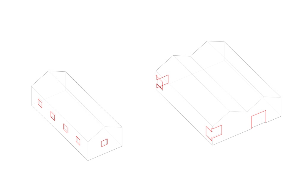 Una reinterpretazione anche tecnica della costruzione vernacolare che si estende alle soluzioni di facciata: finestre d’angolo, aperture alte sotto falda e grandi vetrate scandiscono la composizione in funzione delle attività ospitate — dalla caffetteria all’area espositiva — e del desiderio di ricucire il rapporto tra interno e paesaggio.