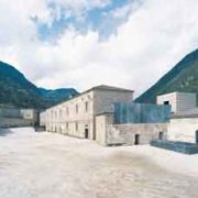 L’ampliamento dell’odierno Hotel Pacherhof consiste nella realizzazione (a tempi di record) di un padiglione e la sistemazione della corte antistante, instaurando un rapporto dialettico tra esterno e interno e tra memorie del passato e identità contemporanea della struttura ricettiva. Luogo di incontro delimitato all’esterno da un muro in pietra naturale, il nuovo spazio si sviluppa su una pianta a forma di trapezio irregolare. Qui gli ospiti possono pranzare e degustare i vini della tenuta di famiglia.