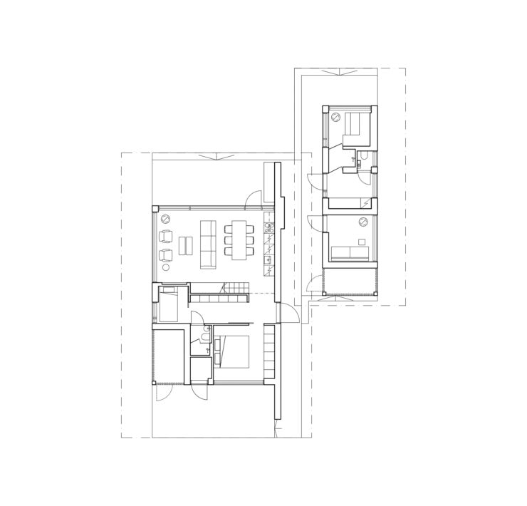 Lo studio di Helsinki fondato nel 2008 da Teemu Saukkonen si è occupato della progettazione architettonica e degli interni degli edifici, nonché del design di un piccolo ponte privato che conduce alla proprietà.