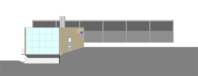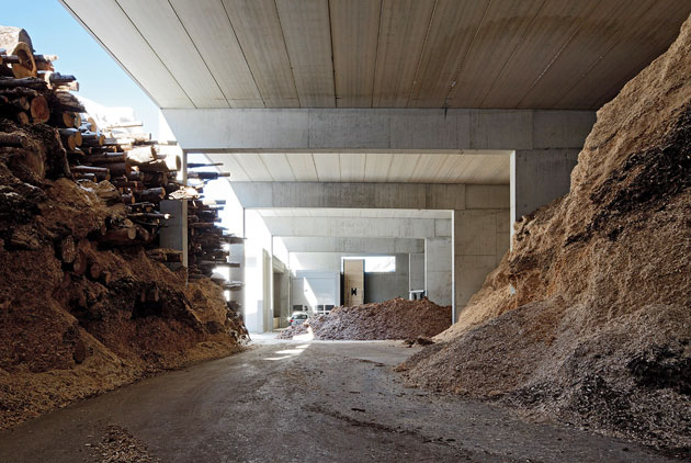 Nel progetto l’utilizzo del legno domina in ogni sua forma, viene infatti utilizzato sia come materiale da costruzione sia come combustibile primario. L’impianto è stato costruito all’interno di un sito preesistente di estrazione di ghiaia che è stato così recuperato. La particolare topografia dell’area, con un andamento longitudinale e a gradoni, ha favorito l’organizzazione tipologica e funzionale dell’edificio in termini di concatenazione ottimale degli spazi legati alle varie sequenze del processo. Il materiale combustibile (prevalentemente cippato) viene immagazzinato al livello superiore, portato in caldaia, bruciato, e le ceneri vengono raccolte al livello più basso, in corrispondenza della strada.