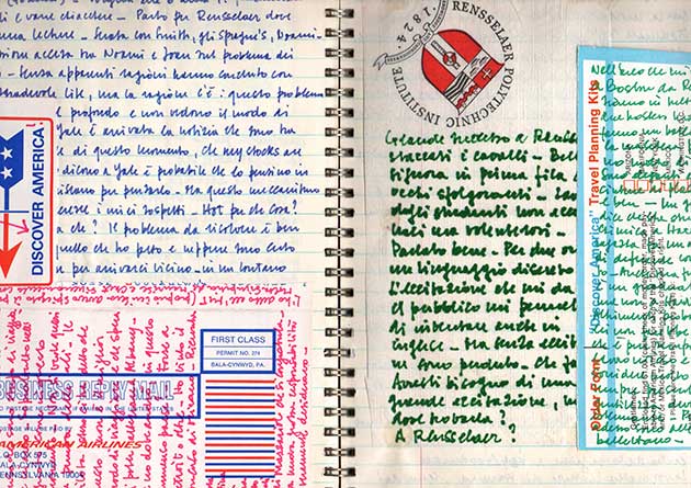Pagina dopo pagina, il tratto inconfondibile della calligrafia di De Carlo, la presenza di schizzi, la scelta e l´utilizzo di supporti differenti per la scrittura, l’ampio utilizzo del collage e del “pop-up” danno vita a un vero e proprio progetto grafico.