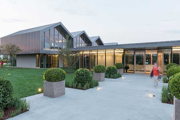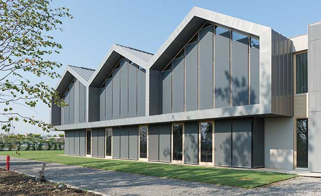 Per la nuova sede di Davines, Zintek ha realizzato le coperture, le facciate opache e le fasce che contornano i serramenti di facciata impiegando il rivestimento in laminato zinco-titanio zintek©.