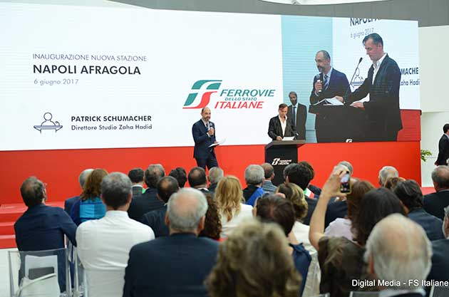 Inaugurata ieri, alla presenza del presidente del consiglio Paolo Gentiloni, la nuova stazione ferroviaria di Napoli-Afragola, progettata da Zaha Hadid. La stazione diventerà operativa da domenica 11 giugno, con il transito di 36 treni alta velocità.