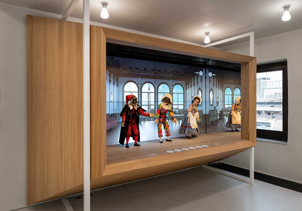 Il legame di Venezia con il teatro e le maschere ha ispirato l'installazione “Teatro Veneziano” – nata da un’idea di Davide Rampello – con le marionette in legno realizzate dall’Atelier Carlo Colla e animate da una tecnologia sofisticata che interagiscono con i visitatori (ph. ©Andrea Martiradonna)