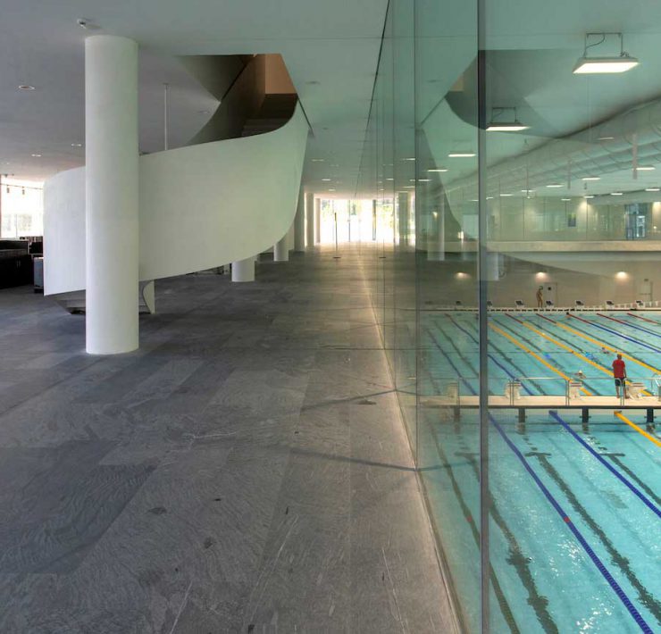 Del vecchio edificio sono stati mantenuti solo una piccola parte del corpo centrale dell’ingresso e la parte interrata della zona piscine. Completamente rifatti – per ottenere un’architettura efficiente e moderna – i volumi, la copertura e gli impianti.
