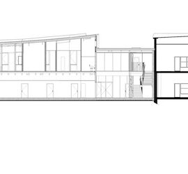 I due nuovi volumi e l’edificio della scuola elementare esistente sono collegati da due passaggi luminosi con corridoi a doppia altezza: il primo, all’incrocio con la struttura esistente, funge da sala della scuola elementare, mentre il secondo, che unisce la sala dell’asilo e l’area giochi coperta, porta abbondante luce naturale sulla strada interna.