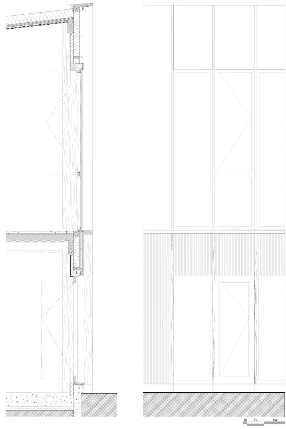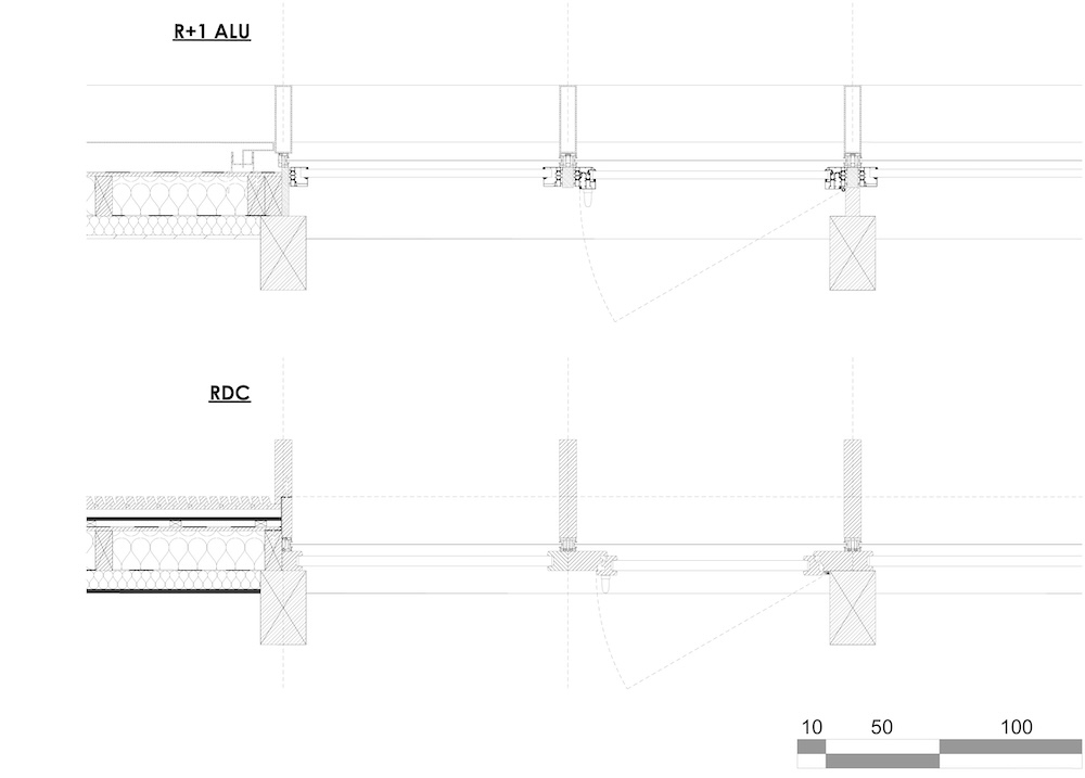 Il piano terra, un’ancora visiva per i bambini, forma una base ampiamente aperta verso i cortili. È rivestito in listelli di legno verticali prefabbricati. Questo rivestimento, realizzato in abete Douglas francese, è pre-invecchiato con una finitura grigia per garantire che il suo aspetto rimanga stabile nel tempo.