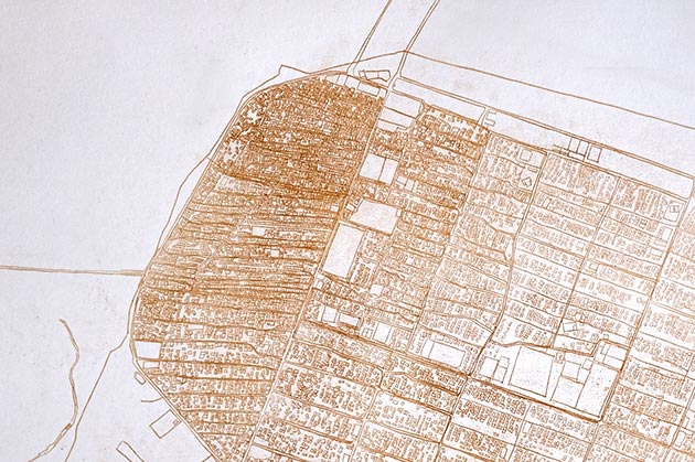 Dettaglio del masterplan del campo di Za´atari; Terra di Mafraq su carta 650 gr. cm. 100×70