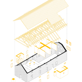 L’ampio cortile della fattoria originaria rimane vuoto, pronto ad accogliere gruppi numerosi di visitatori o a fungere da sfondo per eventi. Il granaio al piano superiore è accessibile solo in occasioni speciali e, come la stalla e il fienile in un’altra parte dell’edificio, sarà oggetto dell’ultima fase di ricostruzione.