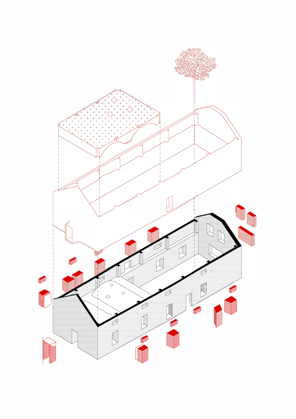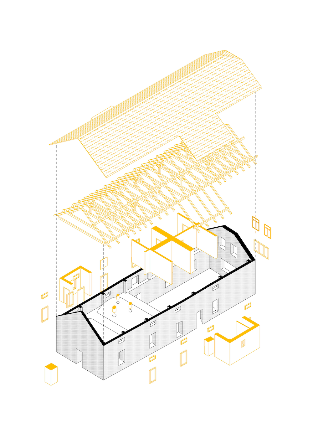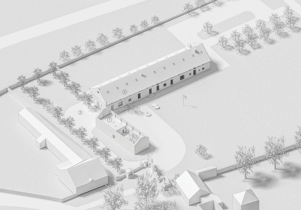L’ampio cortile della fattoria originaria rimane vuoto, pronto ad accogliere gruppi numerosi di visitatori o a fungere da sfondo per eventi. Il granaio al piano superiore è accessibile solo in occasioni speciali e, come la stalla e il fienile in un’altra parte dell’edificio, sarà oggetto dell’ultima fase di ricostruzione.