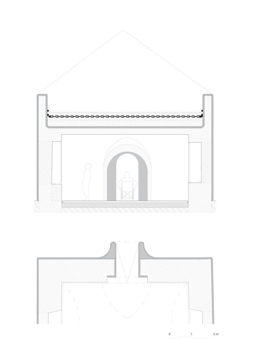 In due nicchie contrapposte dell’atrio è installato il testo di una lettera di Josef Mašín in cui saluta la moglie e i figli. Nella seconda sala, tre aperture poste sul soffitto a volta simboleggiano i tre movimenti di resistenza. L’ultimo spazio, senza tetto, è un luogo di riflessione.