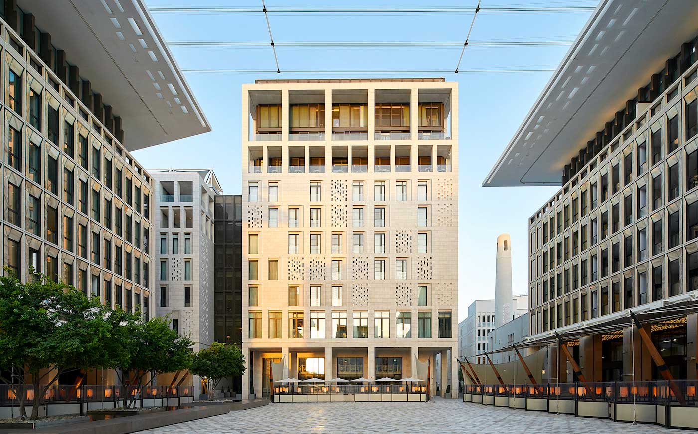 L’hotel si trova a Al Baraha, la più vasta piazza coperta all’aperto del Medio Oriente (e con il più grande tetto retrattile della regione), e ospita 123 camere, 35 suite e 91 appartamenti. Il volume e l’elevazione dell’hotel sono accuratamente integrati all’interno della gerarchia, della scala e del carattere delle strade storiche, dei vicoli, delle piazze e dei cortili che circondano il sito.