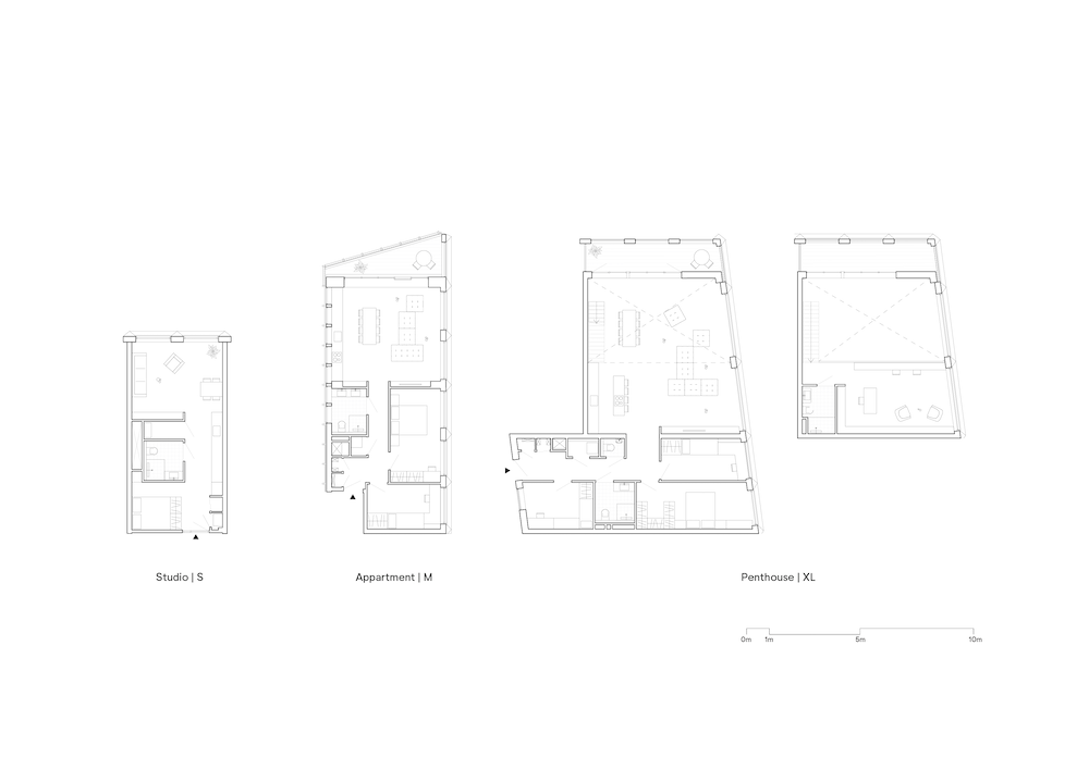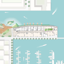 Il concept spaziale degli interni si basa sul modo in cui sono costruite le tradizionali navi in legno: uno scheletro costituito da una serie di capriate disposte in fila, che formano la struttura principale. Questo ha consentito di ricavare grandi cavità nel volume e il programma abitativo richiesto, per un totale di 273 appartamenti, è contenuto all’interno della “pelle” dell’edificio.