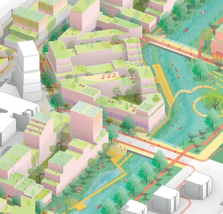 Commissionato da Amvest, il progetto di architettura è di Orange Architects che lo ha sviluppato in collaborazione con Felixx Landscape Architects and Planners per il paesaggio, Abt e Ballast Nedam West.