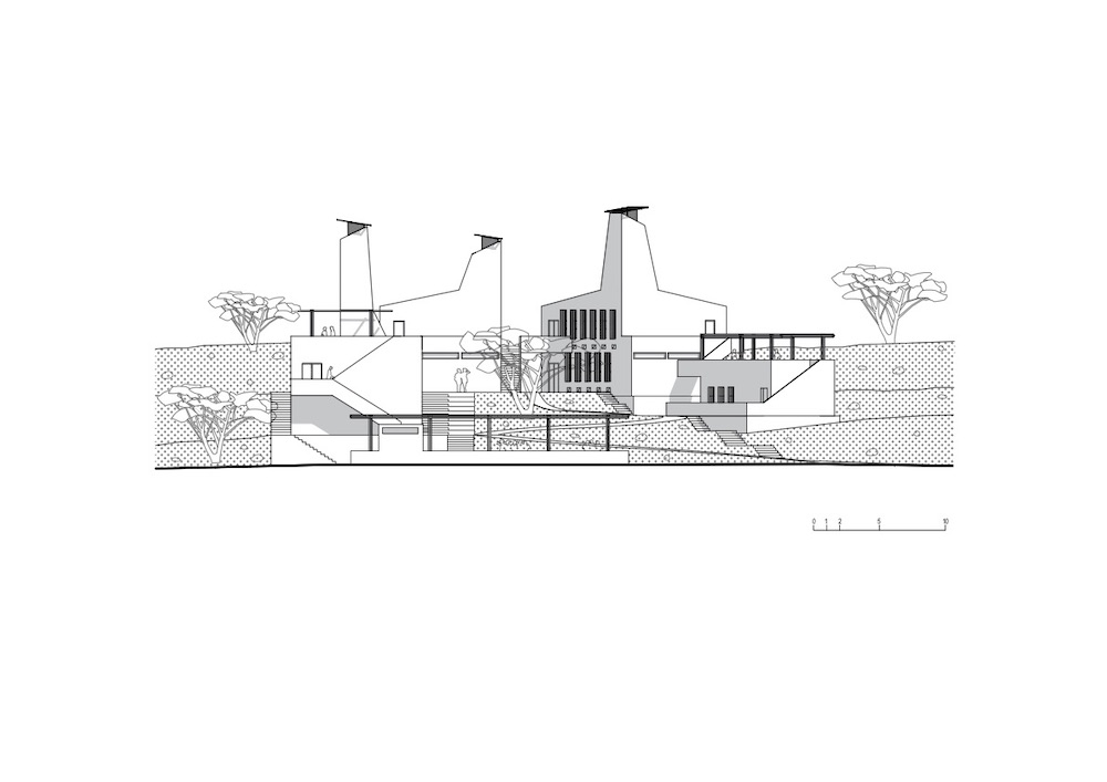 Il progetto celebra la morfologia unica e la bellezza naturale del sito: è costruito su due livelli che seguono il pendio naturale del terreno e presenta ampie terrazze sul tetto che offrono una vista sul lago Turkana.