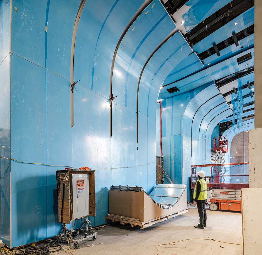 La pulizia formale e la lineare semplicità del risultato è frutto di un sofisticato sistema di geometrie modulari: dopo aver ricevuto la bozza del progetto, il dipartimento facciate di Porcelanosa Usa ha contattato Krion e Butech (entrambi marchi di Porcelanosa Grupo) per studiare tutte le possibilità architettoniche offerte dall’edificio e la procedura da seguire nell’installazione degli 8.000 mq di lastre Krion® previste.