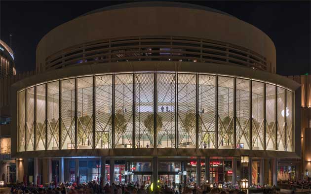 L’obiettivo dei progettisti dello studio Foster+Partners pare raggiunto: far percepire il marchio Apple all’interno della comunità e fare dell’Apple Dubai Mall un vero luogo popolato di persone.