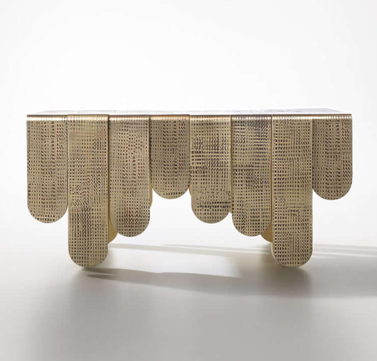 La collaborazione di De Castelli conferma l’impegno dell’azienda veneta a indagare le infinite potenzialità espressive del metallo e l´innovazione di processi produttivi attraverso l’ibridazione tra alto artigianato e tecnologie avanzate, sperimentando finiture e modalità di lavorazione per offrire una percezione contemporanea del materiale. Inediti percorsi di ricerca che sono stati applicati anche su scala architettonica e da cui sono nate collaborazioni come l’Archimbuto, immaginato da Cino Zucchi come portale per il Padiglione Italia alla Biennale Architettura di Venezia, e i padiglioni Ovs e Excelsior all’Expo di Milano 2015, progettati da Alessandro Pedron e Marco Zito per il Gruppo Coin.