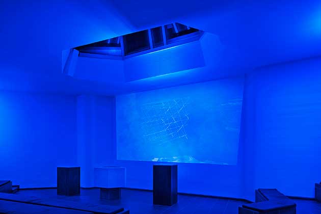 «È “il rigore francescano” espresso dal maestro finlandese, padre dell’architettura organica, e il nordico spirito calvinista– afferma Jacques Toussaint – che mi spingono ad esplorare con interventi minimi l’Esprit des lieux di questo edificio, dove ho intenzione di inserire pochi elementi artistici e di esaltare le grandi qualità architettoniche dell’edificio utilizzando un medium presente in tutte le mie installazioni, una luce di colore blu intenso emanata da tubi al neon con vetro tinto in pasta.