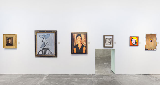 | Da sinistra a destra, Autoportrait de Raphael di Jean-Auguste-Dominique Ingres, Copy of Picasso di Cy Twombly, De Hory Modigliani di Pierre Huyghe, Mochetti di Mochetti (Jean Harlow) di Maurizio Mochetti, Warhol Marilyn (study of Warhol diptych) di Sturtevant, Marilyn di Louise Lawler foto©Delfino Sisto Legnani Studio, Courtesy of Fondazione Prada |