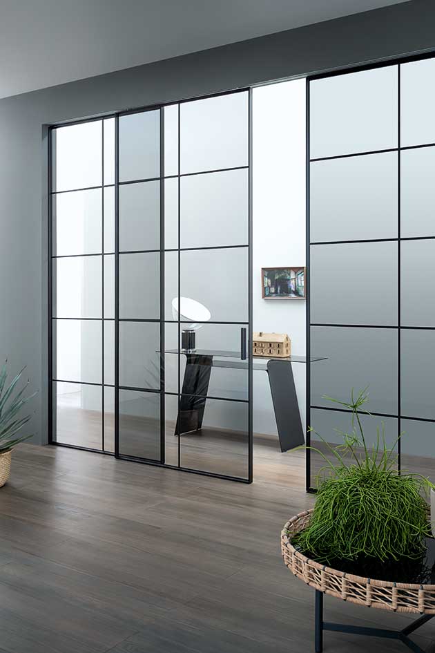 La leggerezza dell´alluminio e la luminosità del vetro arredano gli ambienti più diversi, dal residenziale all´ufficio, dall´hotel allo showroom o al negozio. Gli elementi scorrevoli di L7 Plus riescono infatti a suddividere gli spazi senza creare situazioni di chiusura: la porta è per Lualdi un sistema che apre.