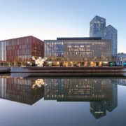 Gli architetti hanno lavorato sulla consistenza e sulla massa del costruito destrutturandola gradatamente e cercando di raggiungere un’architettura che potesse slanciarsi verso l’esterno, con elementi via via più leggeri a cui sono stati affidati importanti ruoli funzionali – come il setto che segna l’asse dell’ingresso principale diventando una lunga trave sospesa in corrispondenza dell’accesso pedonale su strada.
