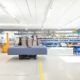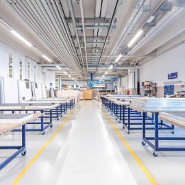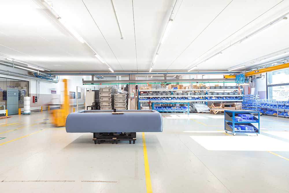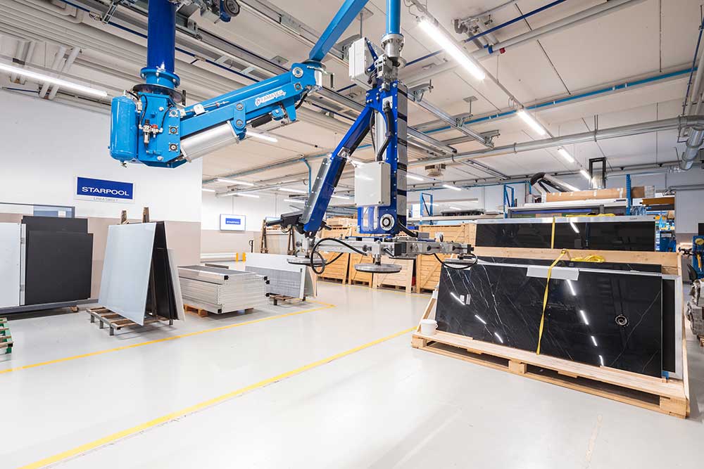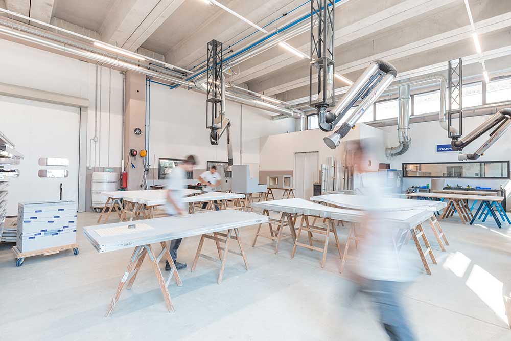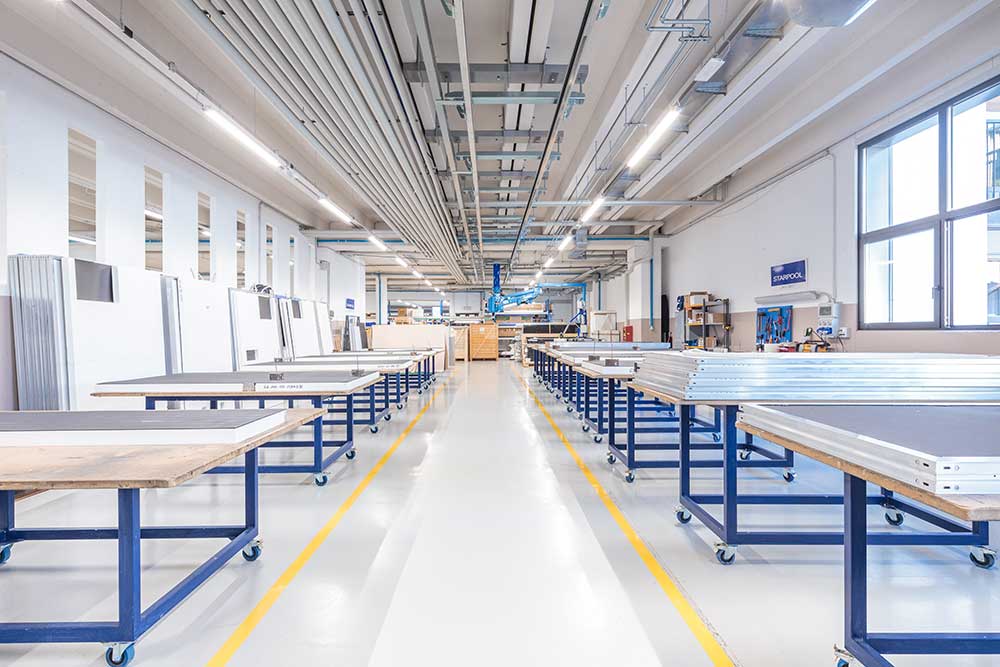 La produzione è stata ripensata seguendo le linee guida del Lean Management. Oggi, riuniti in un unico piano, i reparti produttivi sono luoghi per le persone, spazi di luce in perenne evoluzione aperti a ospiti e visitatori che possono assistere a tutte le fasi di realizzazione di un oggetto Starpool. «Produciamo benessere e diamo forma al bello. L’ambiente in cui viviamo ogni giorno, dove nascono idee e realizzazioni, deve corrispondere a questi valori di benessere e bellezza, deve poterne aiutare lo sviluppo» spiega Massimo Libretti, responsabile dell’area tecnica dell’azienda.