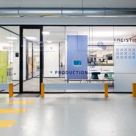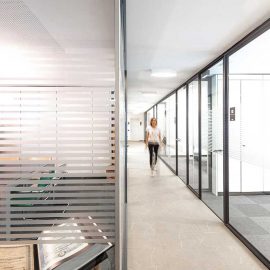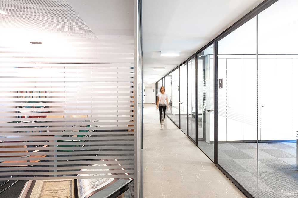 I parapetti in cemento sono stati sostituiti con altri in vetro che lasciano percepire l’attività che si svolge all’interno di una azienda fatta soprattutto di persone.