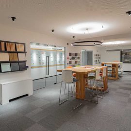 Numerose le zone interessate dall’aumento di superficie. Il nuovo edificio ha permesso di reintegrare in un unico polo le zone di produzione satellite sviluppatesi nel tempo. Punto cardine dell’intervento, rendere identificabile come un organismo unico l’edificio originale e i successivi ampliamenti del 2006 e del 2019, raccogliendoli in un unico pensiero funzionale ed estetico, che diventa espressione architettonica della design identity sviluppata da Starpool nel corso degli anni.