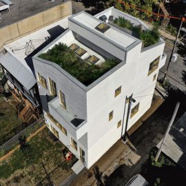 Sono una combinazione di realtà familiari, un assemblaggio di frammenti del mio quartiere \ Sono un cittadino vivace, una narrazione condivisa per sfidare l’individualità \ Sono una struttura scoppiettante, testata e approvata per la sua compattezza \ Sono uno, due, tre giardini, sopra, sotto, davanti, dietro \ Sono uno studio, il più giovane del trio, una conversazione con il mio vicino di casa soriano \ Sono un appartamento con terrazza alta, un’acconciatura ben cresciuta \ Sono una casa sul lato del cortile, una torre su quattro livelli \ Sono una tunica di mattoni forati, una ghirlanda di ammiccamenti dorati \ Sono una passeggiata all’ombra, una fuga per il giardiniere \ Sono un nido familiare disinibito, un castello per bambini, giovani e vecchi \ Sono un edificio vivente…