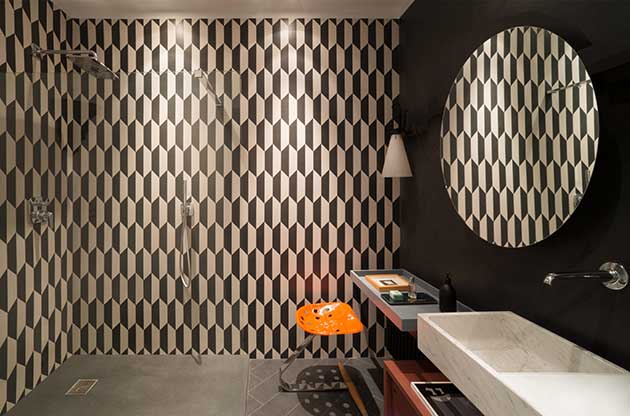 rivestimenti ceramici a effetto optical per gli interni di Cpn 21, progetto di Diego Grandi |