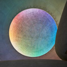 Alla base della cupola asimmetrica è collocato un nastro vetrato a pannelli colorati che nella forma un arcobaleno, ©BoysPlayNice.