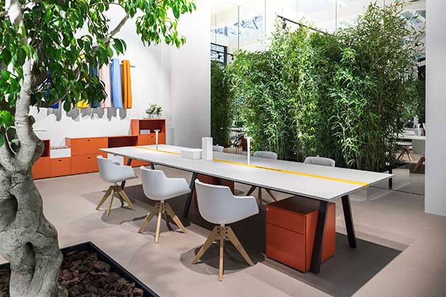 Il tavolo diventa il luogo attorno al quale si lavora e si vive; uno spazio anche conviviale per scambiare idee e intrattenere relazioni positive.