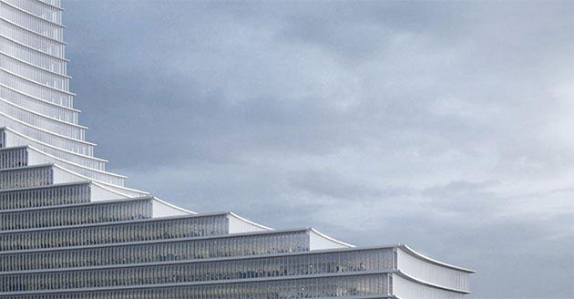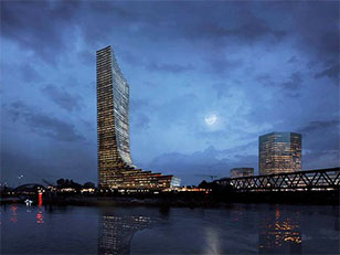 Presentato oggi al pubblico, il progetto, che sorgerà in prossimità del ponte sull’Elba, modificherà ulteriormente il paesaggio urbano agendo da contrappunto alla mole della Elbphilarmonie di Herzog e de Meuron inaugurata di recente, diventando il segnale di ingresso orientale a HafenCity.