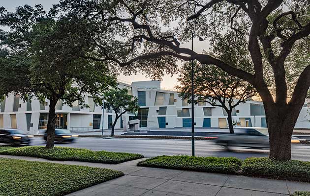La nuova sede della Glassell School è situata nella zona nord-ovest del campus e comprende 31 aule per l’insegnamento a bambini e adulti, spazi espositivi, un auditorium, una piazza pubblica, una grande fontana e un giardino pensile.