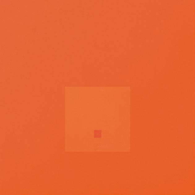 Antonio Calderara, Attrazione quadrata in quadrato. Lealtà per Josef Albers, 1966-67, olio su tavola 54 x 54 cm, Sammlung Fer, Ulm, foto Armin Buhl |