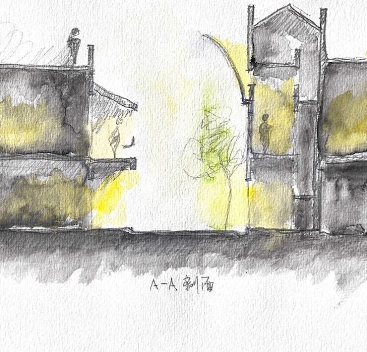Nella zona di Huangshan, tetti e timpani a gradoni sono onnipresenti e simboleggiano l’architettura in stile Hui, e anche se Yan Yang, a capo di y.ad studio, afferma di non essere propenso a incorporare elementi storici nei nuovi edifici «perché ci si dovrebbe concentrare sull’adozi0ne di metodi contemporanei piuttosto che sulla replica delle pratiche del passato», in questo caso, cogliendo il fascino del villaggio, con le chiacchiere degli abitanti, il profumo del cibo e l’odore dei forni a legna, ha modellato lo spazio utilizzando il linguaggio e la forma contemporanei per entrare in simbiosi con il patrimonio culturale esistente.